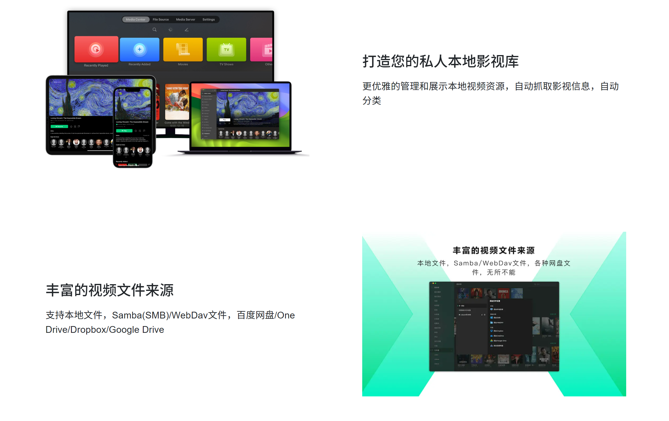 VidHub是一款苹果/安卓多平台视频播放器(苹果用户需要在App Store下载)。支持管理本地/smb服务器/webdav服务器/阿里云盘/百度网盘/移动云盘/123 网盘视频文件,支持群晖等NAS网络存储。自动刮削整理影视资源。同时拥有强大的播放器,支持mp4/mkv/webm/avi/rmvb/wmv等几乎所有的视频格式。支持倍速,字幕,截图,HDR等。